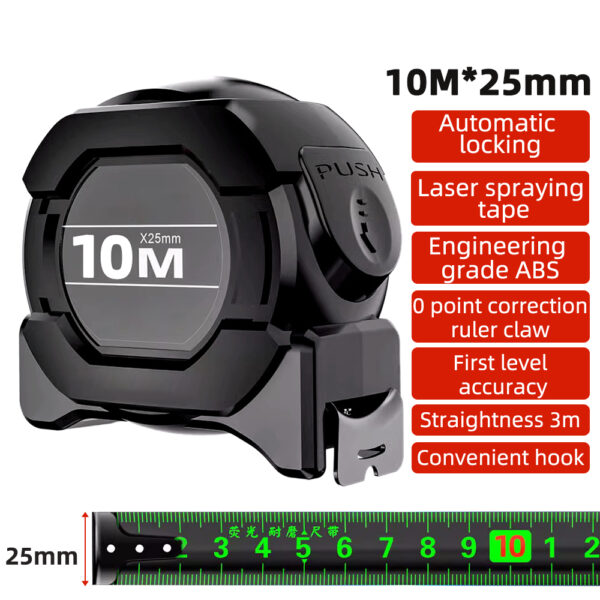 Shop premium 5/7.5/10M fluorescent steel measuring tape with automatic lock, laser markings, and ±1 mm accuracy—perfect for woodworking, construction, and DIY projects.