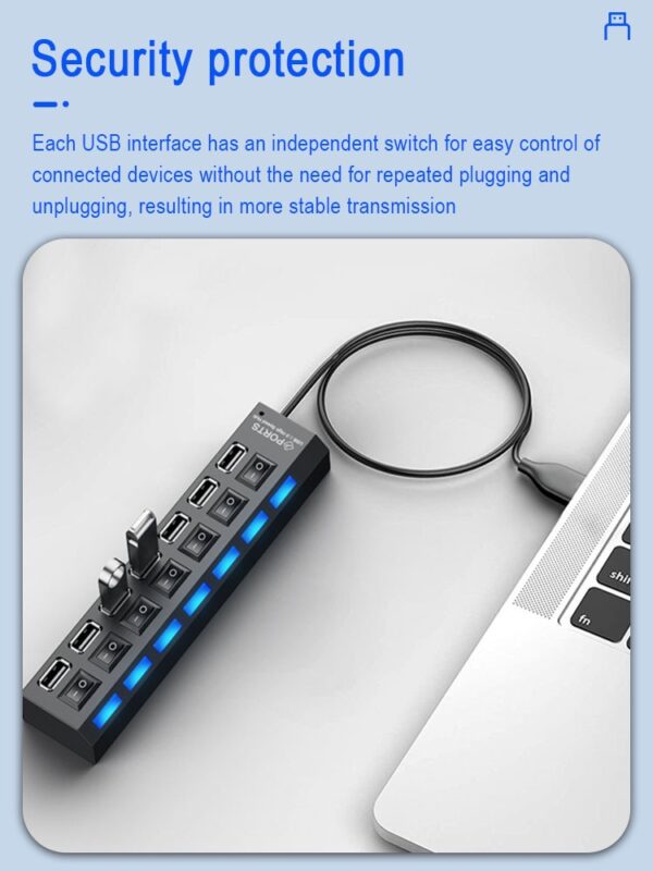 - 7 USB Ports: Connect up to 7 devices simultaneously.