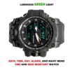 - Multifunctional – Date, alarm, stopwatch, luminous display, week/month/day view, and 12/24-hour format.
