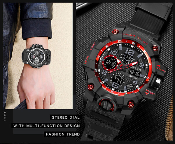 SANDA-60210 New Arrival Men’s Dual Display Sports Watch – Waterproof Military Quartz & LED Multi-Function Watch