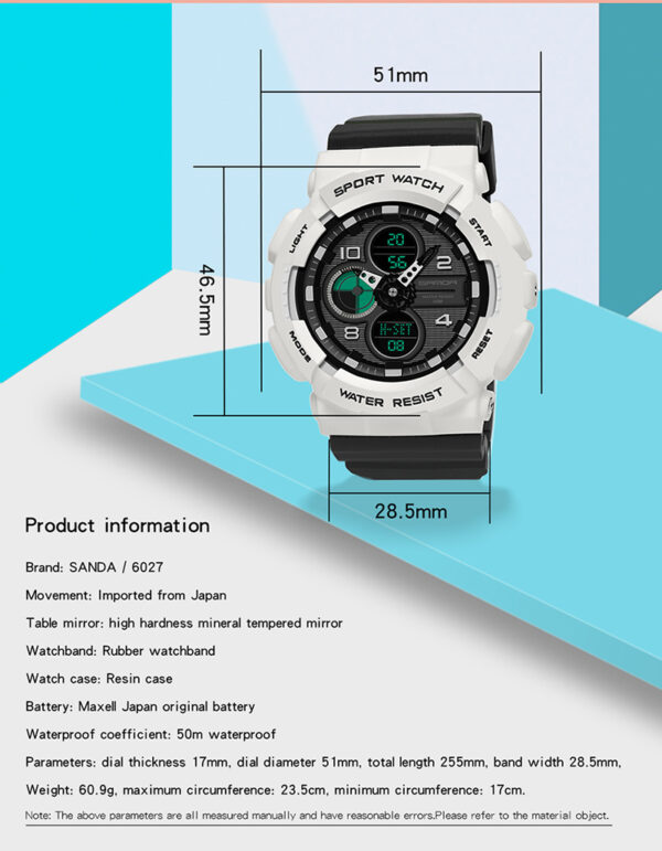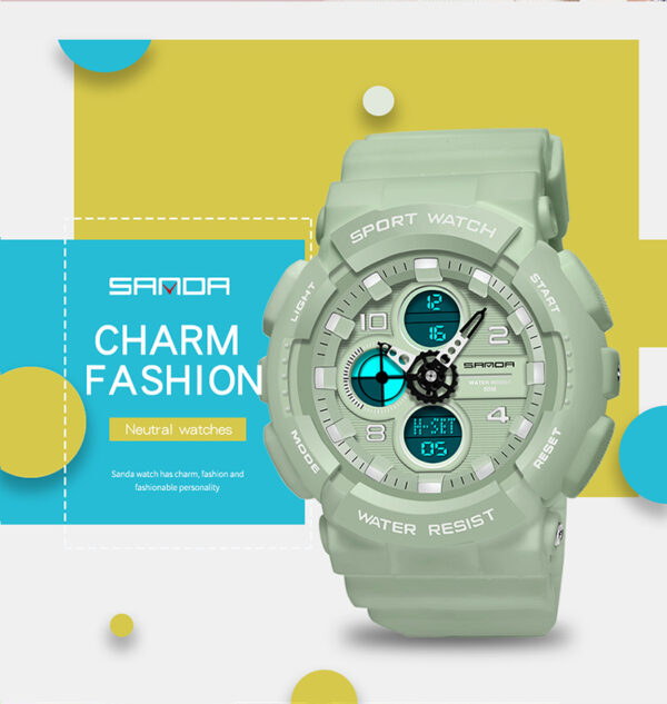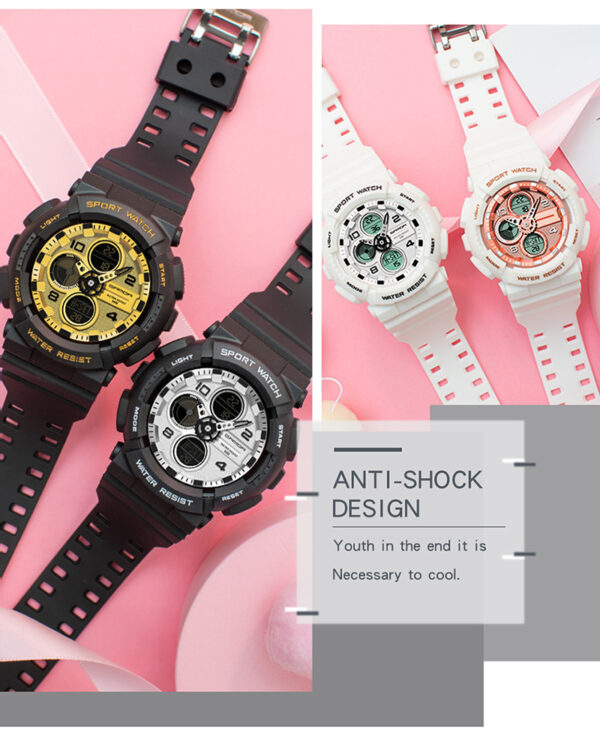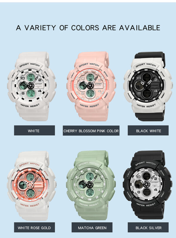 Dual Display – Combines analog and digital time with LED backlight for day and night use.