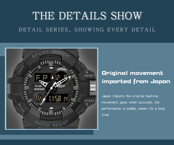 SANDA-7800 Sports Electronic Fashion Men’s Watch – Waterproof, Dual Display, Multi-Function